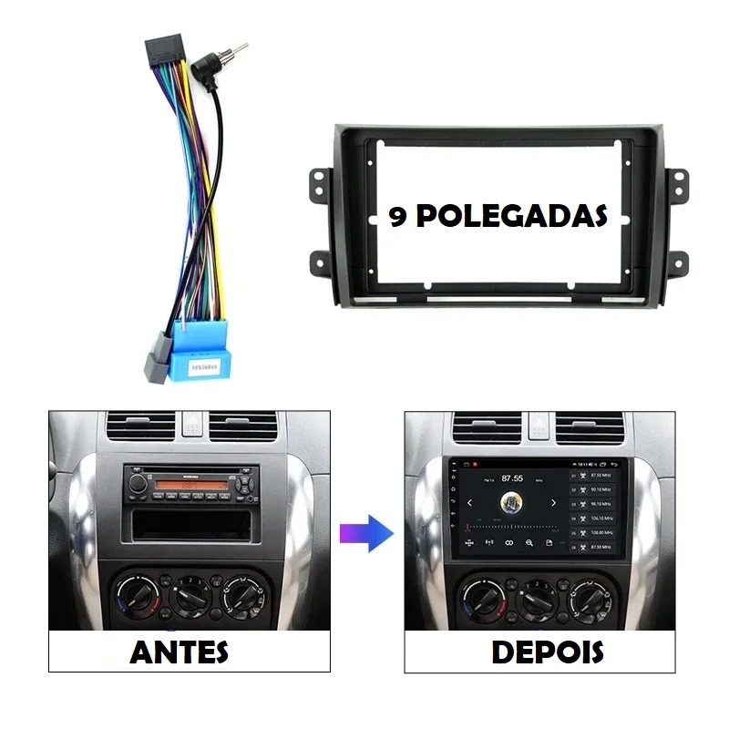 Moldura/Fascia e cabos de conexão para instalação de Centrais multimidia 9" SUZUKI SX4 2009-2014 NAVPRO CASKA